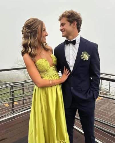 HOT ! Lawrncedw Women's Satin Pleated Prom Dresses with Keyhole V Neck Long Bridesmaid Dresses Sleeveless Formal Evening Gowns