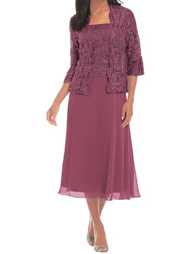 More information about Tea Length Mother of The Bride Dresses for Women with Jacket Chiffon Wedding Guest Dress Lace Formal Dress