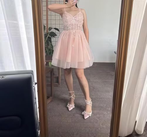 Dydsz Spaghetti Strap Appliques Homecoming Dresses for Teens HOCO Dress Tulle Short Prom Dress for Women 4