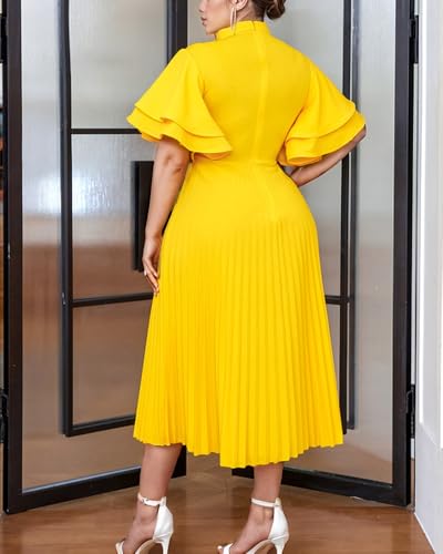 ONTINVA Women Plus Size High Neck Pleated Hem Party Dress Flared Sleeves Elegant A Line Midi Dresses 4