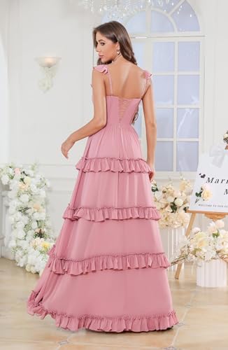 Verngo Chiffon Long Bridesmaid Dresses for Women Tiered Ruffle A Line Formal Wedding Guest Dress with Pockets 5