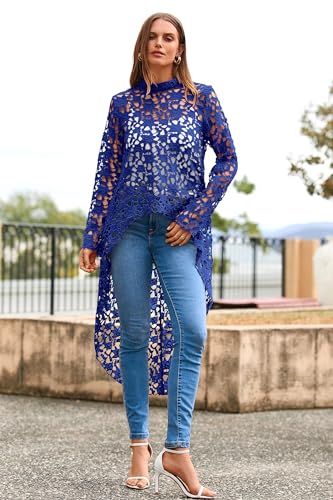 • Dressy Long Sleeve Blouse: Loose Fitting Shirt Dress With Long Asymmetrical Hem Will Make You Fashionable And Elegant. The Overall Lace Top Is Beautiful, Showing Off Your Unique Charming