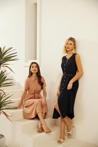 GRACE KARIN Women Casual Summer Dress 2025 Business Work Belted Sleeveless Button Down Shirt Midi Dresses with Pockets 2