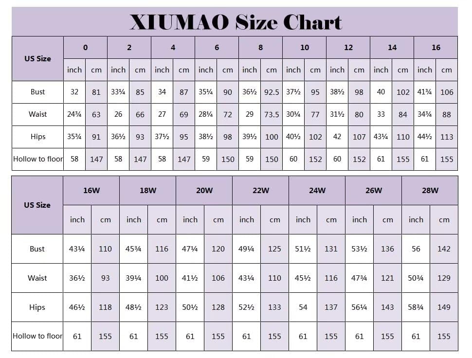 • Product Sizes: Please refer to the left SIZE CHART before purchasing and DO NOT follow your usual size. For customization, please send us your detailed size info including bust/waist/hips/shoulder to hem with your shoe heels.
