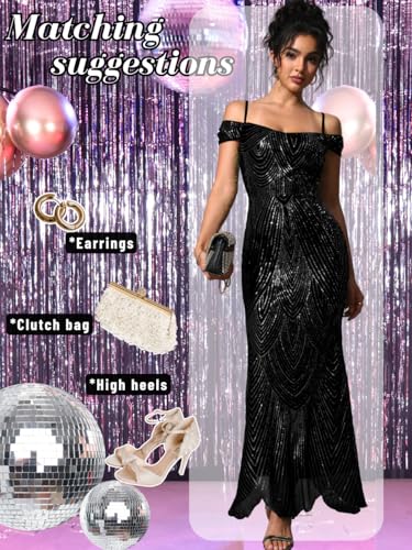 HOT ! Kaei&Shi Sequin Prom Dress,Sparkly Off Shoulder Long Formal Dresses,Evening Gowns for Women Elegant Classy