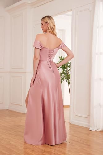 Women's Off Shoulder Mermaid Prom Dresses with Slit Long Satin Corset Formal Party Gowns Bridesmaid Dresses 4