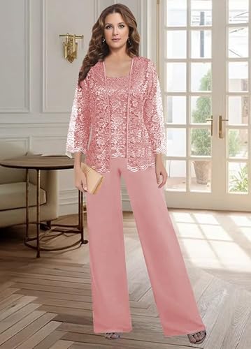 • FEATURE: This mother of the bride pant suits is designed with lace and chiffon fabric. Our set includes three pieces, an elastic waist chiffon pant, an elegant sleeveless lace top, and a matching lace jacket. Featuring square neck, zipper closure, 3/4 sleeve/long sleeve outfit, fully lined. Gorgeous and elegant enough to wear in any occasion.