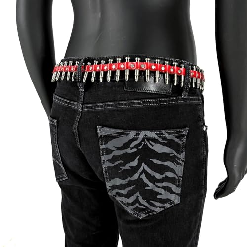 Red Genuine Leather Belt with Solid Metal Bullet studded for Women or men 7