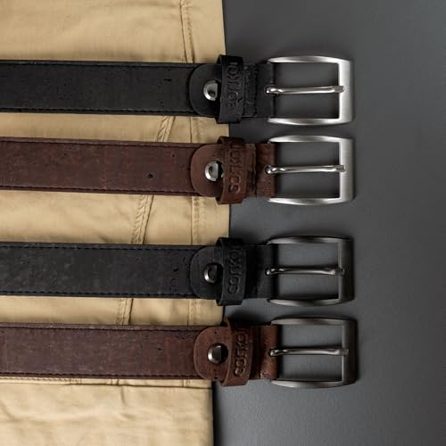 HOT ! Men's Vegan Belt Cork Strap with Silver Buckle, Durable Adjustable Eco-Friendly 1.18" Wide, Versatile for Daily Use