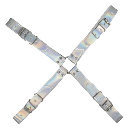 • This men's chest harness features a striking X-shaped structure that wraps around the upper body, highlighting the chest and shoulders