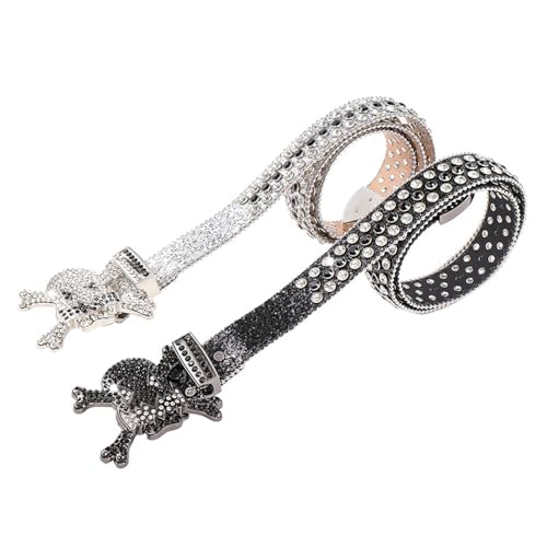 Rhinestone Skull Belt, Bling Punk Rock Studded Waist Strap Crystal Cowboy Belt Gothic Belt for Jeans Pants 2