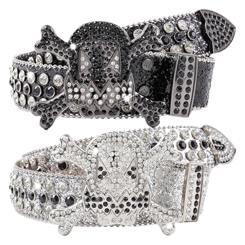 Rhinestone Skull Belt, Bling Punk Rock Studded Waist Strap Crystal Cowboy Belt Gothic Belt for Jeans Pants 1