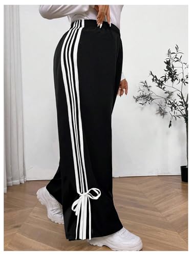 Verdusa Women's Plus Size Bow Striped Wide Leg Long Pants High Rise Casual Loose Trousers 6