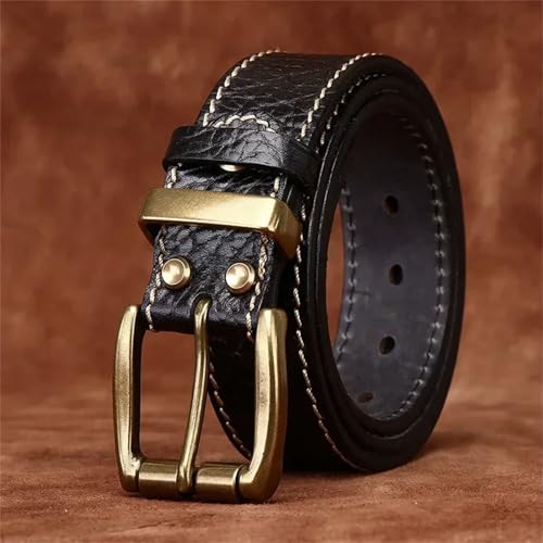 Men’s 3.8cm Wide Cowhide Belt Genuine Leather Strap with Retro Brass Buckle Luxury Designer Jeans Waist Belt 3