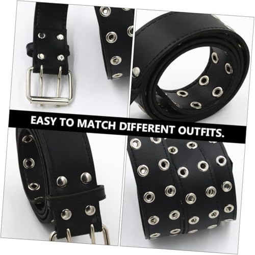 Mens Leather Belt - Fashionable, Versatile, Punk Style, Double Row Holes 3