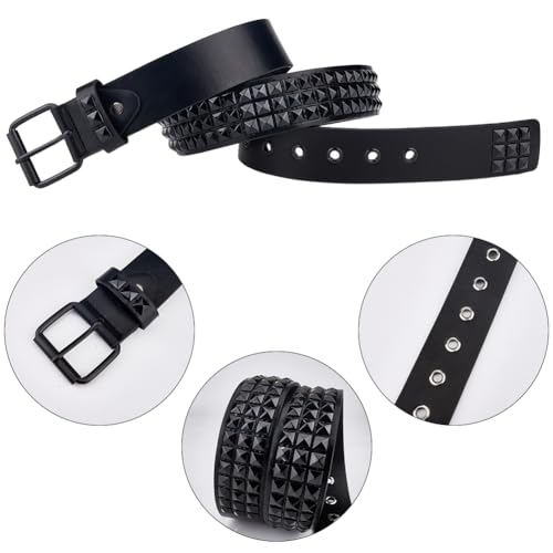 GORGECRAFT Black Rivet Belt PU Leather 44.4 x 2 Inch Gothic Punk Rock Bright Metal Alloy Pyramid Studs Studded Grommet Threads Belts for Clothing Jeans Pants Dresses Women Men Supplies 4