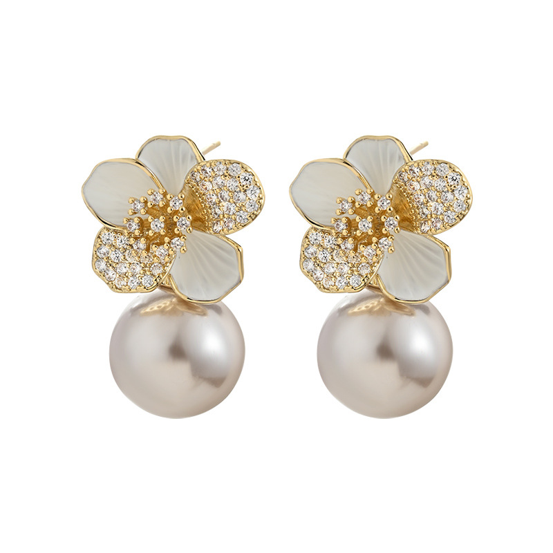 More information about S925 Silver Needle Enamel Oil - dropping Camellia Stud Earrings for Women, High - end Pearl Earrings, Ear Jewelry