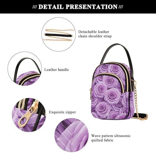 Vivid Flowers Purple Floral Shoulder Purse for Women Printed Chain Strap Cell Phone Purse Quilted Zipper Crossbody Bowler Bag 5