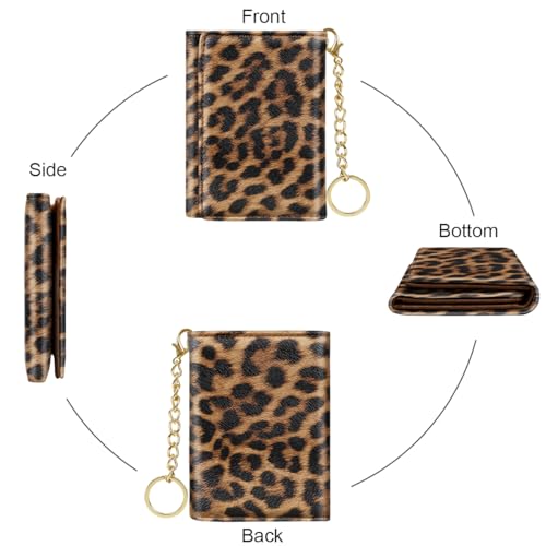 Trifold Womens Wallet Small Slim RFID Blocking Card Wallet Cute Credit Card Holder Leather Mini Purse with Cash Pocket 7 Card Slots ID Window, Leopard 5