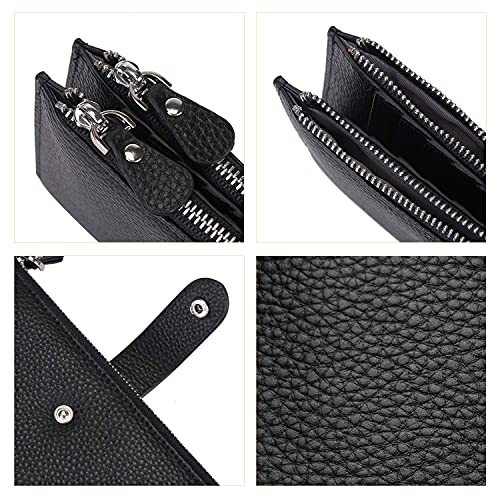 • Made of Genuine Leather and heavy-duty hardware. Double zipper pockets, snap closure and bi-fold design, minimalist and practical.