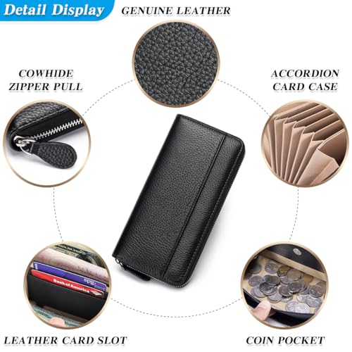 Large Capacity wallets for women RFID Blocking Leather Long Zipper Clutch Wallet with 18 Card Slots & coin Pocket,Black 6