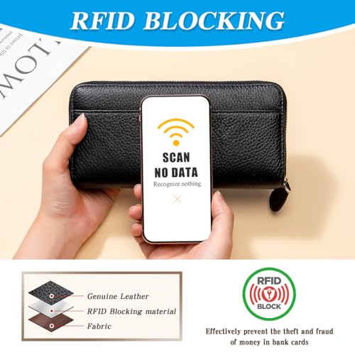 HOT ! Large Capacity wallets for women RFID Blocking Leather Long Zipper Clutch Wallet with 18 Card Slots & coin Pocket,Black