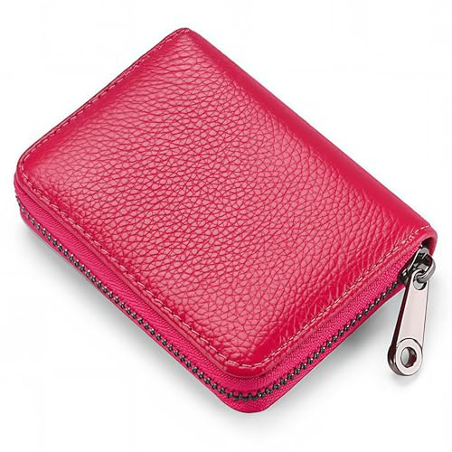 Red RFID credit card holder for women, 20-slot leather wallet card case with zip closure 1