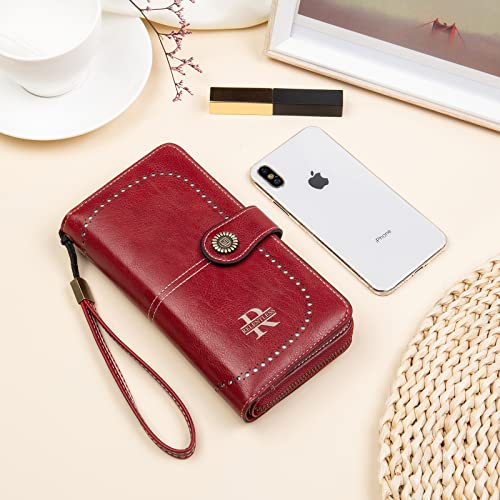 Nobelook Personalized Wallets for Women Bifold Leather Zipper Pocket Womens Wallet Long Credit Card Holder (Red) 1