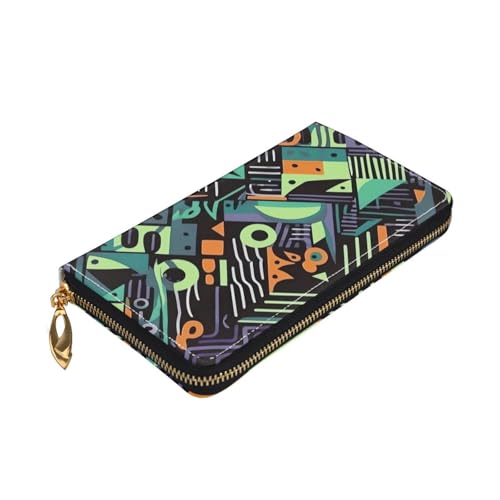 Geometric pattern in graffiti style Leather Wallet for Women Long Coin Purse Ultra Slim Credit Cards Holder Bifold Clutch 1