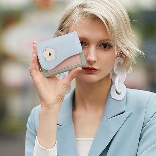 HOT ! Small Womens Wallet, Trifold PU Wallets for Women, Ladies Wallet with Floral Print Design(Pink)