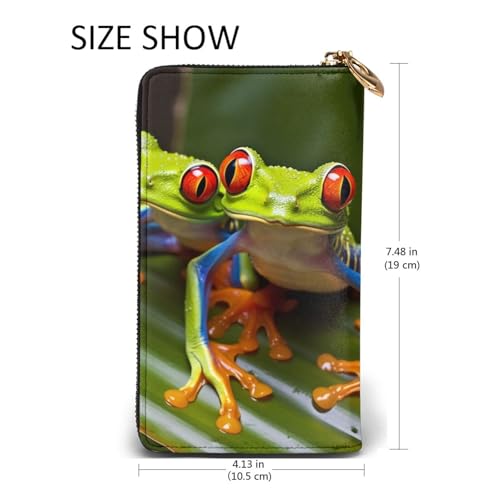 HOT ! Red Eyed Tree Frog Wallet For Women Men Clutch Rfid Blocking Leather Wallets Large Capacity Purse Credit Card Holder Money Case With Zipper Phone Holder Long Travel Purse
