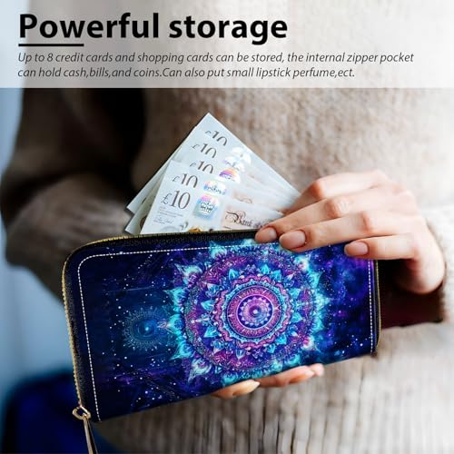 More information about Women's Card Holder Wristlet Wallet, Convenient Travel Long Wallet with Strap and Pink Compact Mirror, Fashion and Sturdy Wristlet Long Purse for Women, Purple Mandala