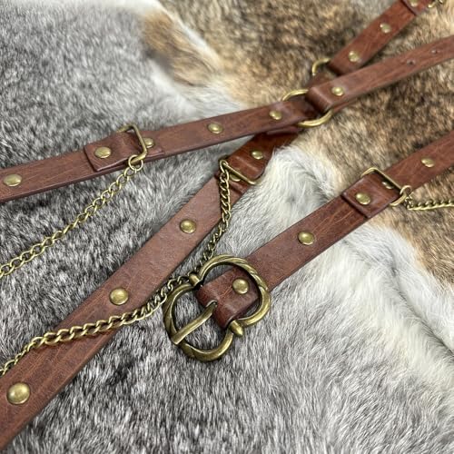 HiiFeuer Medieval DIY Faux Leather Metal Chain Belt, Vintage Adjustable Thin Belt For Women, Retro Skinny Belt For Dresses 3