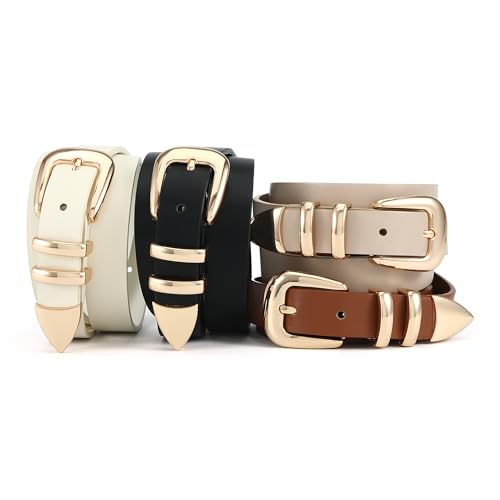 More information about Women Belt Fashion Faux Leather Waist Belts for Ladies Pants Jeans with Gold/Silver Buckle