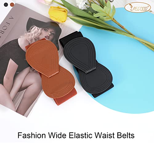 JASGOOD 2 Pack Women Stretchy Belts for Dress Vintage Wide Elastic Waist Belts 2
