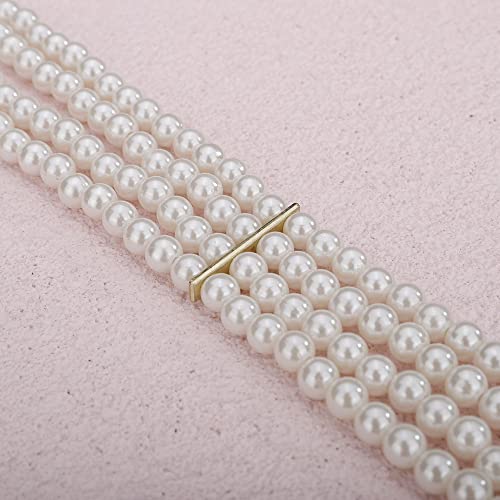 Jumwrit Elastic Pearl Belt for Women Rhinestone Big Pearl Flower Waist Chain Layered Pearl Wedding Dress Belt Sash Off White Round Pearl Bridal Belt(Style 3) 6
