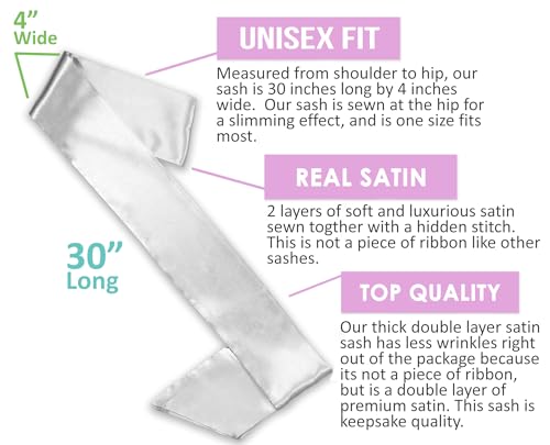 • THE PERFECT FIT! This Bride to Be sash measures 30” long x 4” wide, our bridal sashes are designed to drape perfectly across the body.