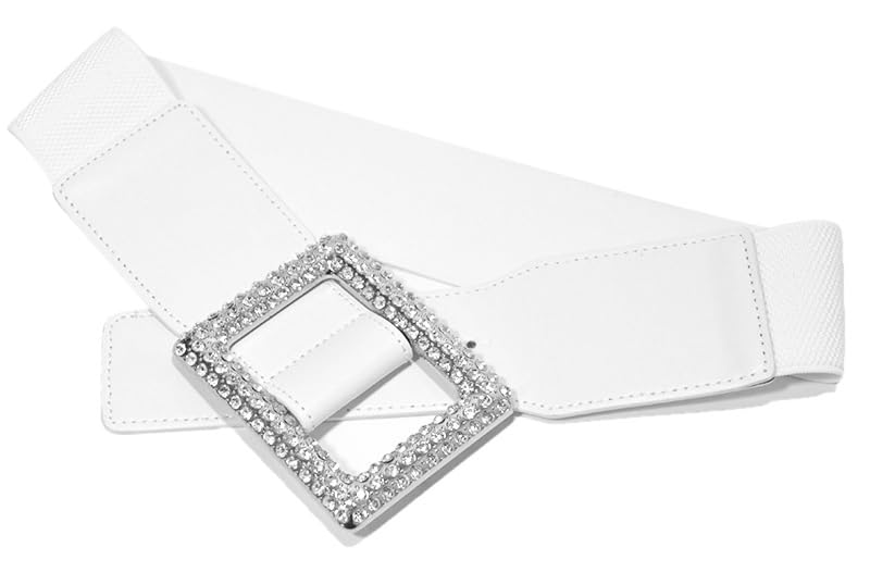 Women Fashion Belt with Rhinestone Buckle - Western Cowgirl Style Bling Elastic Waistband for Dress Jeans Pants S/M 5