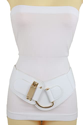 TrendyFashionJewelry Women Elastic Band Belt Hip High Waist Gold Metal Hook Buckle L XL White 3