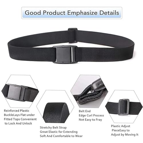 • Upgrading your wardrobes with this adjustable elastic waist band that seamlessly tucks sweaters and shirt while providing invisible comfortable for full day wear.