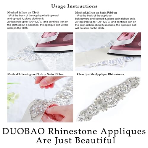 • ★ BEST MATERIALS FOR WEDDING SASH : China 5A crystal rhinestones, clear and sparkly, bright off white pearls and beads, silver claws, fine designs and beautiful patterns rhinestone applique