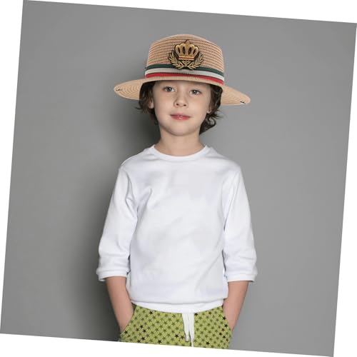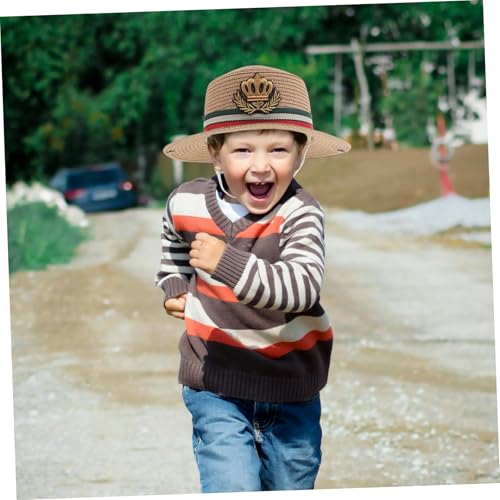 CLISPEED Spring Autumn Straw Hat Wide Brim Sun Protection Beach Hat for Boys Straw Sun Hat for Outdoor Activities Vacation Khaki 5