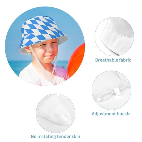 HOT ! Blue Diamond Shaped Bavarian FlagChildren's Bucket Hat for Boys and Girls, Breathable Summer Beach Hat52cm