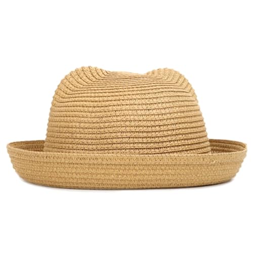 Cute Straw Hat with Cat Ears & Devil Horns - Summer Beach Bowler Derby Cap for Boys & Girls 6