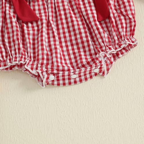 Thanksgiving Baby Girl Outfit Infant Plaid Bubble Romper Onesie Newborn Croissant Bodysuit Fall Winter Clothes 6