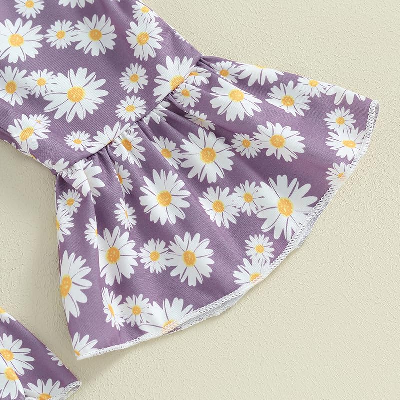 • Package Includes: 1 x long sleeve romper top + 1 x daisy bell-bottom pants + headband. Best gift for your daughter, grandaughter, niece, or friend's baby girls who will definitely love to wear it. Worth having