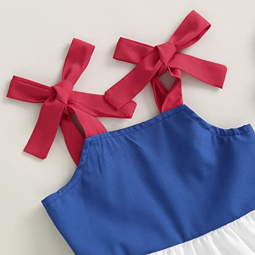Kids Little Girls Suspenders Dress Tie-Up Straps Sleeveless Color Block Princess Dresses Beach Sundress Headband 6