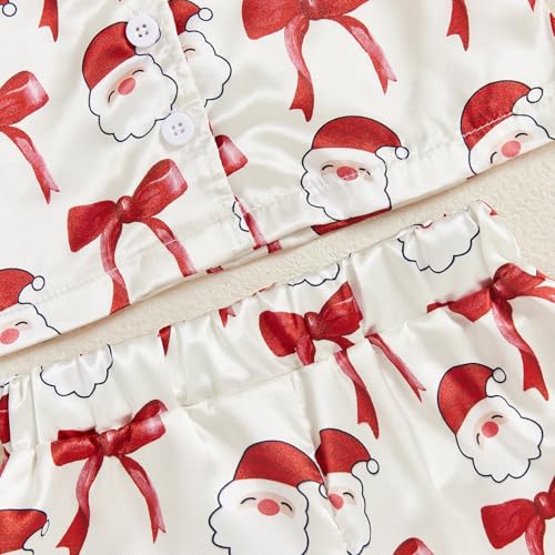 Baby Boy Girl Christmas Silk Pajamas Set Button Down Deer Santa Long Sleeve Shirts Tops and Pants Satin Pj Sets 2