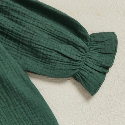 MAINESAKA Toddler Baby Girl Pajamas Cotton Linen Lounge Set Solid Color Button Down Shirt Flare Pajama Pants Sleepwear Outfit 5