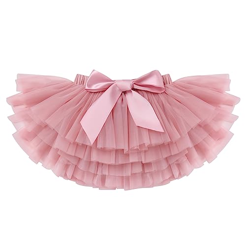 • Birthday Dress for Baby Girl: Short sleeves and round neck bodysuit, bodice is printed with letter "one", "1st Birthday",rainbow pattern,which is very suitable for her birthday.Lapped shoulder design offers enough space for babies movement, and with 3 snap buttons on the crotch for easily diapers changing.Matching the fluffy tiered tutu skirt with elastic waistband,super stretchy and breathable to wear.A ribbon bowknot printed with polka dots at front waist, adds cute feelings to the overall.
